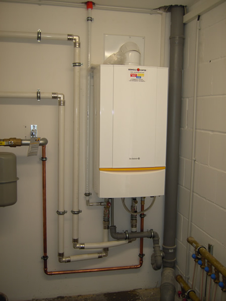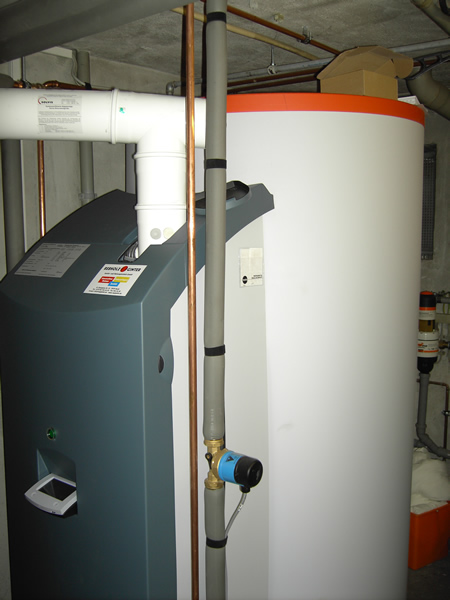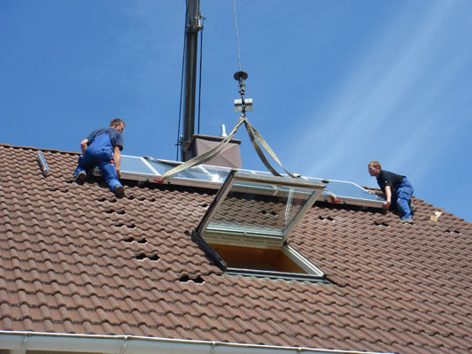 Austausch des alten atmosphärischen Gaskessel durch einen Sovlis Max Gas Brennwertkessel mit heizungsunterstützender Solaranlage im Einfamilienhaus.
