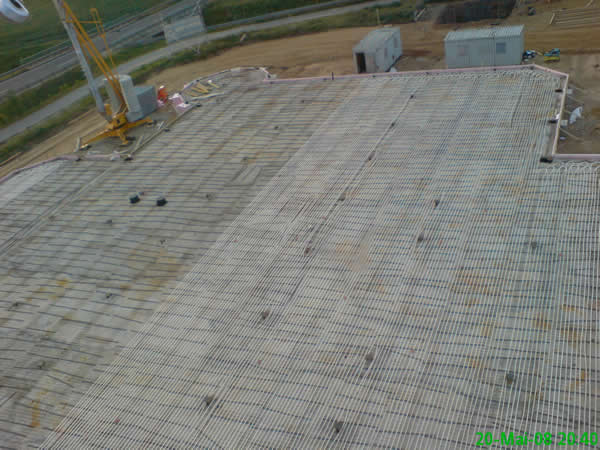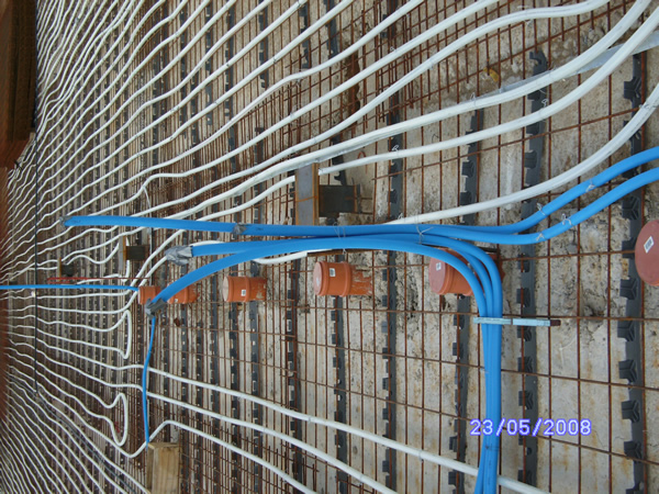 Hierbei wird die bodenebene Betonplatte von unten gedämmt und die Heizungsrohre mit einer Bindemaschine auf die Armierung aufgebunden. Je dichter der Verlegeabstand umso geringer später die Betriebskosten.