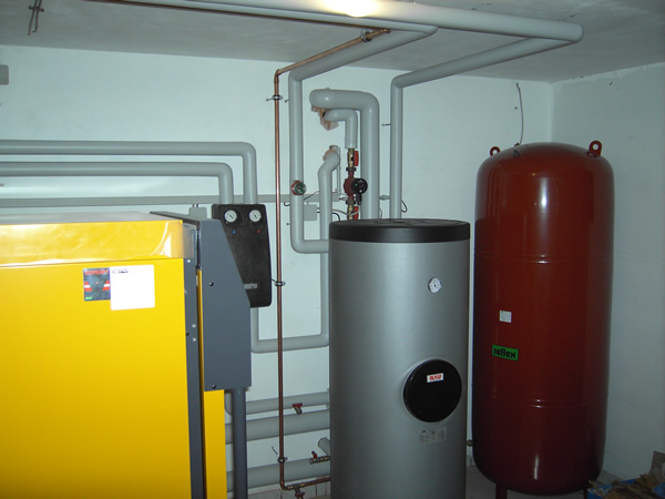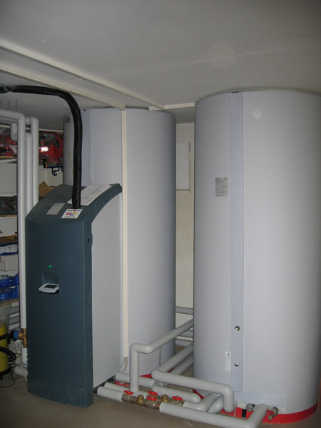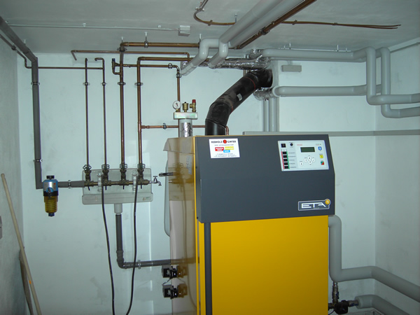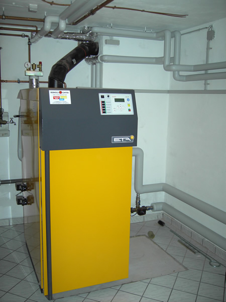Austausch des alten ÖL/Holz Kombikessels durch einen ETA Stückholzkessel SH 40 im Einfamilienhaus. Der Kunde hat sich für eine reine Holzfeuerung entschieden, die je nach größe des Pufferspeichers auch „relativ“ komfortabel sein kann. So ist es bei dieser Anlage z.B. möglich, den Warmwasserbedarf für eine Woche mit einer vollen Pufferladung abzudecken. Um den Puffer vollständig zu laden, sind 2 Kesselfüllungen notwendig. Der in diesem Falle extrem große Speicher war ausdrücklicher Wunsch des Kunden.