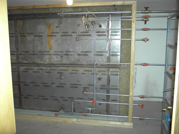 Der Speicher wird im Keller aus Einzelblechteilen gefertigt und anschließend komplett mit Steinwolle isoliert. Da der Speicher eckig ist können große Volumen mit geringem Platzbedarf geschaffen werden.